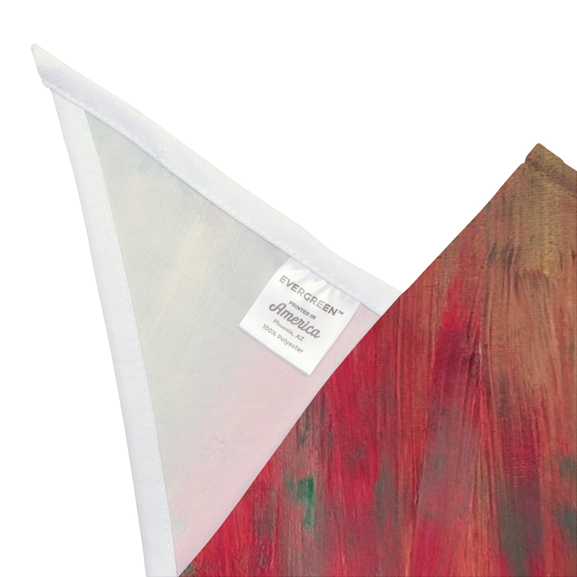 A soft, artful bandana that adds painterly color to everyday walks and cozy photos. Lightweight polyester drapes into a neat triangle that frames your pet’s face or collar with streaks of warm coral, mint, and muted gold. The single-sided, all-over print gives each piece a slightly unique brushstroke look—like a tiny wearable canvas—while hemmed edges and a sewn-in label keep it looking tidy through play and washing. Available in two sizes to suit both small pups and larger companions, it slips on easily and dries fast after rainy strolls.